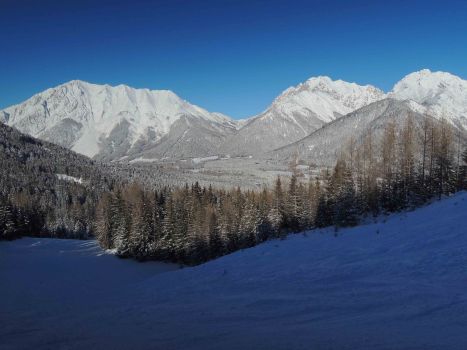 Blick von der alten Skipiste des Grünberg auf Marienberjoch