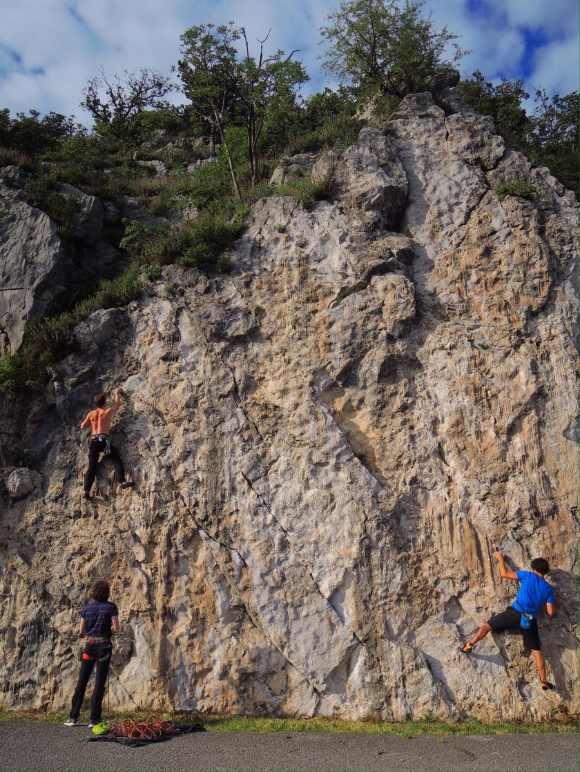 Nach drei Wochen Verletzungspause wollte ich natürlich rasch wieder Fels unter den Fingern spüren. Die Routen sind hier auch nicht sehr lang, ca. 15m, was meiner nicht mehr vorhandenen Ausdauer zu Gute kam.