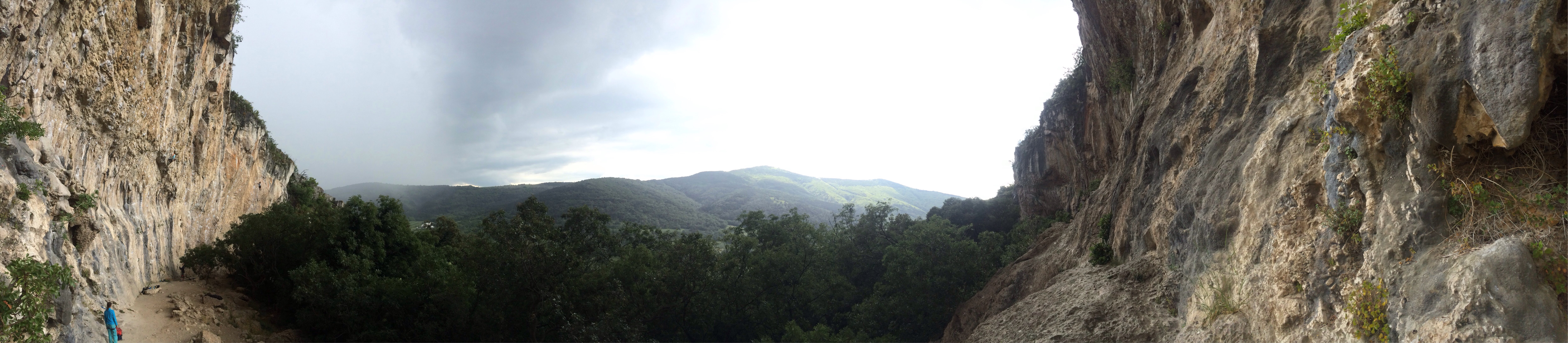 Ca. 500 Meter hinter Osp befindet sich dieses Amphitheater aus rötlich gelben Kalkgestein. Die halbkreisförmige Wand hängt fast überall über und bietet bis zu 42 m hohe Routen. Geklettert wird meist an Sintern. Eine gute Ausdauerkraft ist hier gefragt. Routen gibt es ab 6b aufwärts.