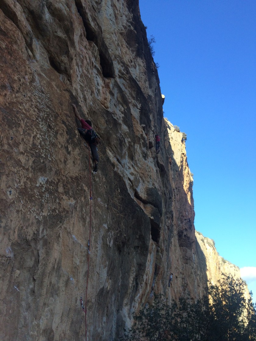 Die S förmig gewundene Schlucht mit ihrem rotbraunen bis grauem Kalk bietet Routen aller Schwierigkeitsgrade.