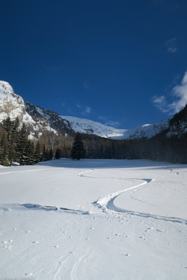 bei der Luegeralm, in Bildmitte die Mulde durch die man aufsteigt