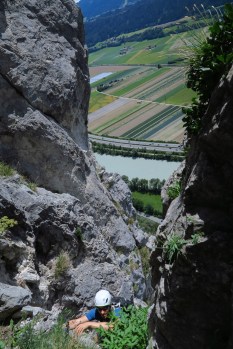 die erste Seillänge ist ein steile Rinne
