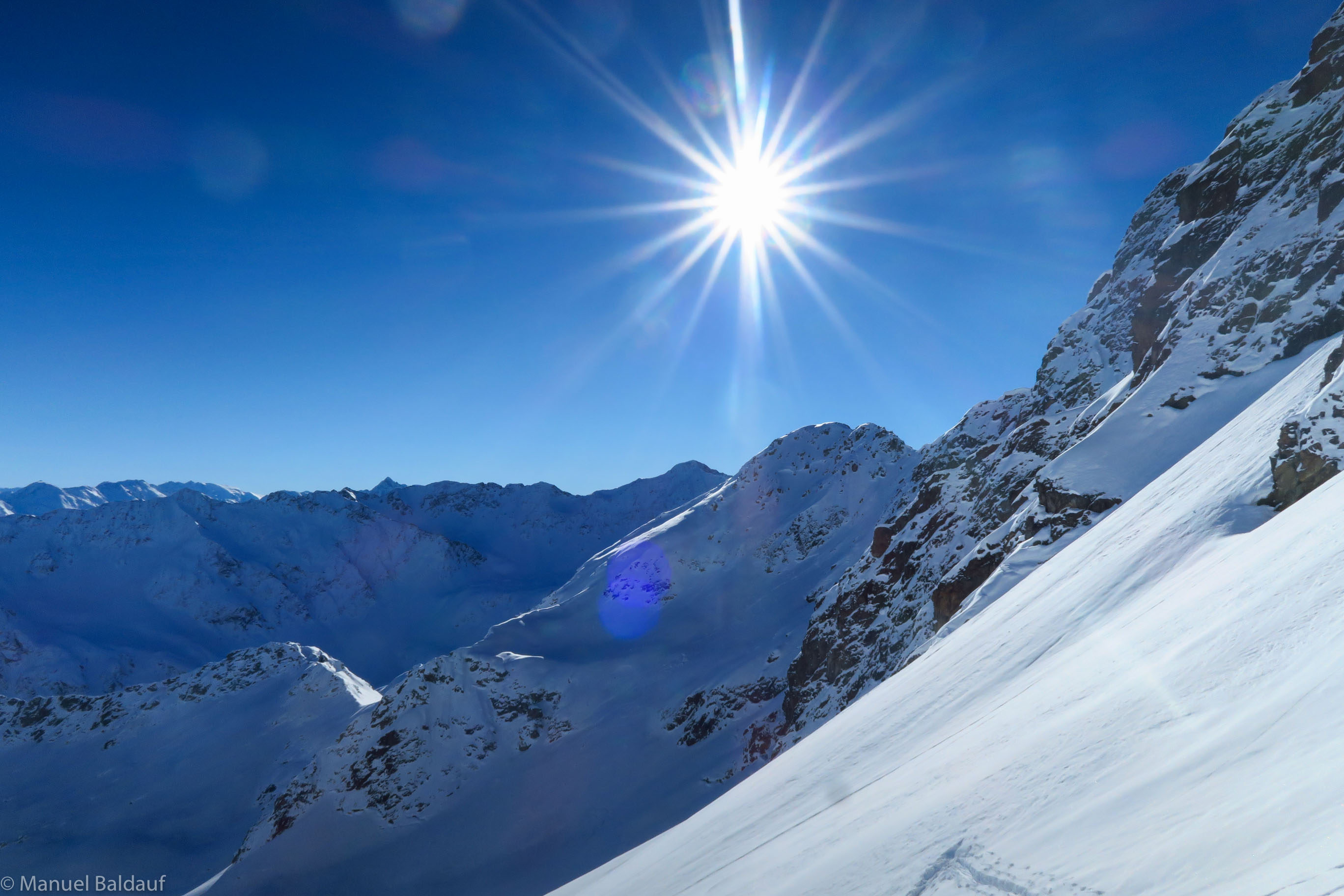 Heute ging es nochmals nach Westen. Genauer gesagt nach Pettneu am Arlberg und von dort durch das Malfontal über einen Forstweg Taleinwärts. Der Hohe Riffler ist der höchste und bekannteste Berg in dieser Region. Den werden wir uns eventuell später in der Saison nochmals anschauen. Im Moment noch zu wenig Schnee.
