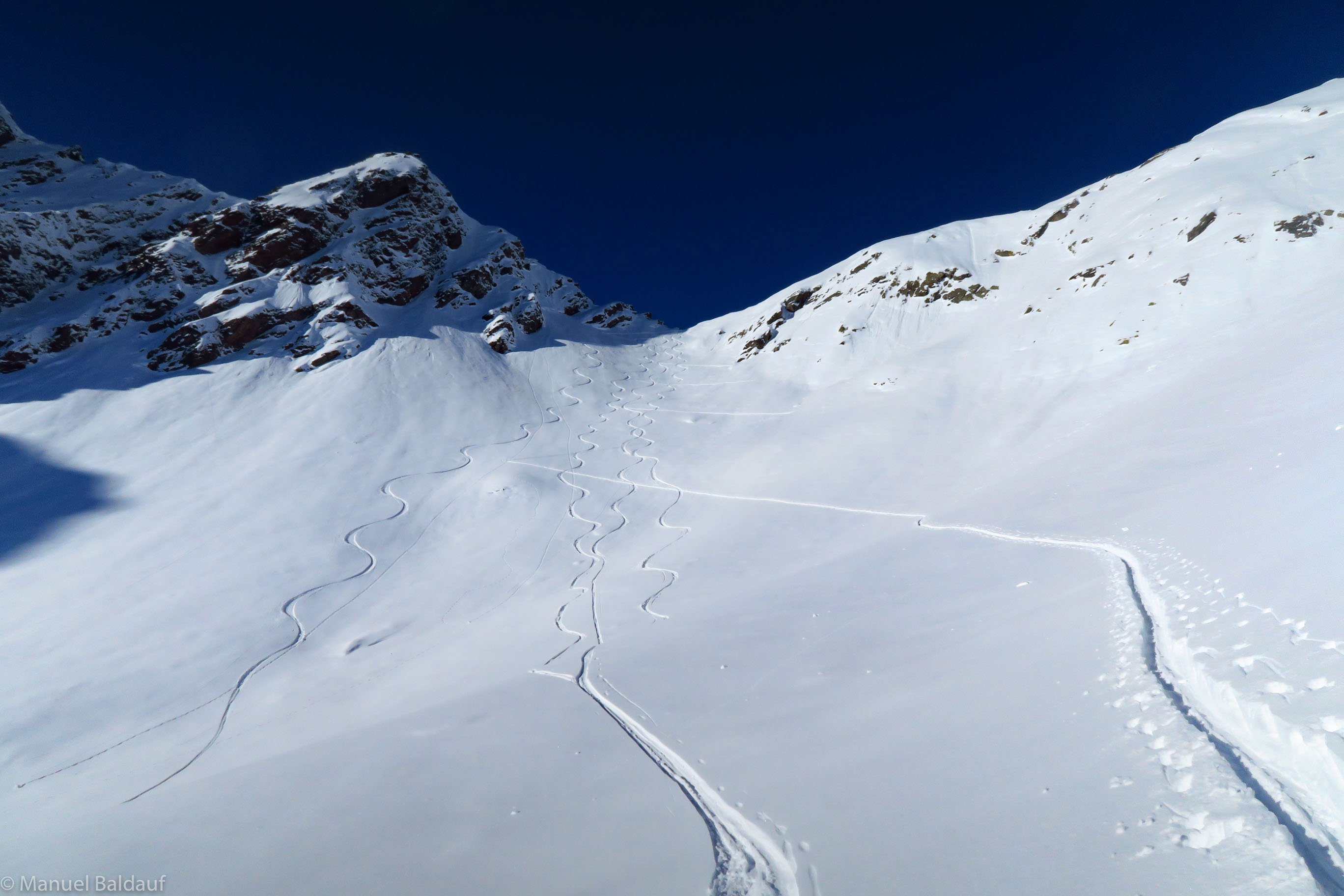 Heute ging es auf die Rechte Seite des Malfontals Richtung Hochkarspitze. Genauer in eine Scharte zwischen Hochkarspitze und Hochkarkopf. Genialer Pulver, strahlender Sonnenschein und keine Leute. Gesamt ca. 1.600hm und 18,44km hin und zurück.