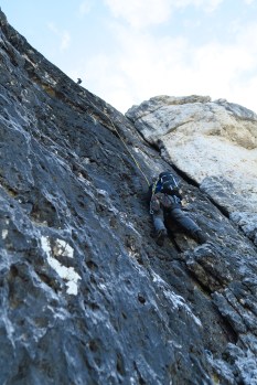 Dolomiten, Piccolo Lagazuoi, Westwand, Maurizio Speciale, V+