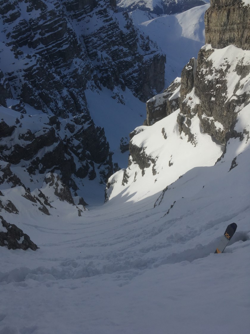 2. Rinne nach der Marchreisenscharte. Schnee noch ganz brauchbar, allerdings schon recht gesetzt und teilweise auch schwer.