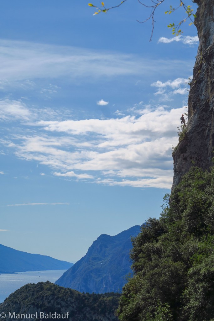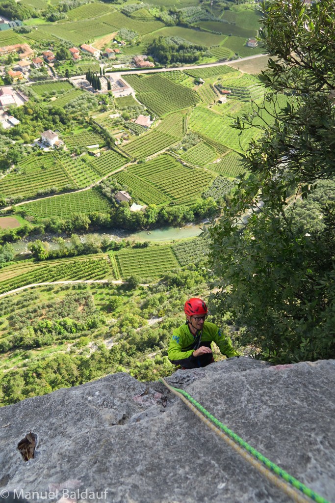 Genussklettern am ersten Tag in der Via Nataraj an der Mandrea hinter Arco war angesagt. Eigentlich wollten wir ja die Soleado machen aber die Nataraj lief uns sozusagen zufällig vorher über den Weg 🙂