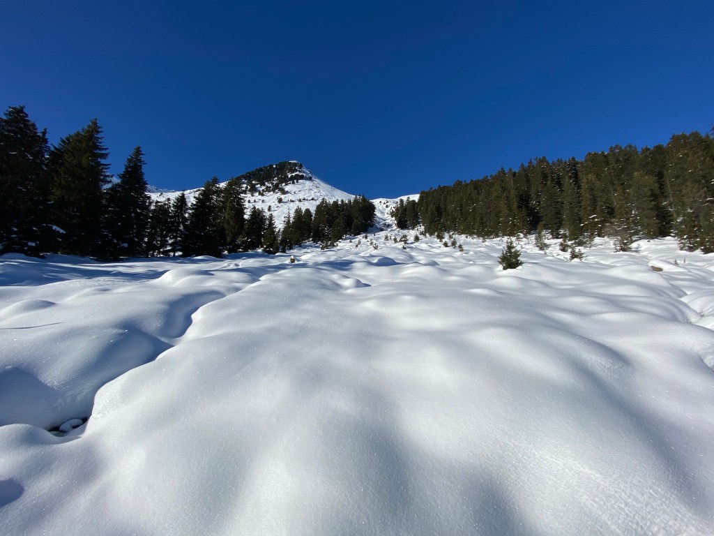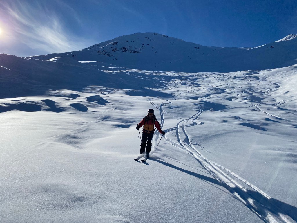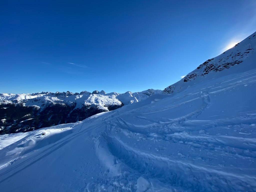 Fazit: im unteren Bereich gepresster Pulver und oben abgeblasen. Trotzdem a schöne Tour. Etwas Schnee aus Osttirol dürfte Frau Holle aber gern zu uns schicken.