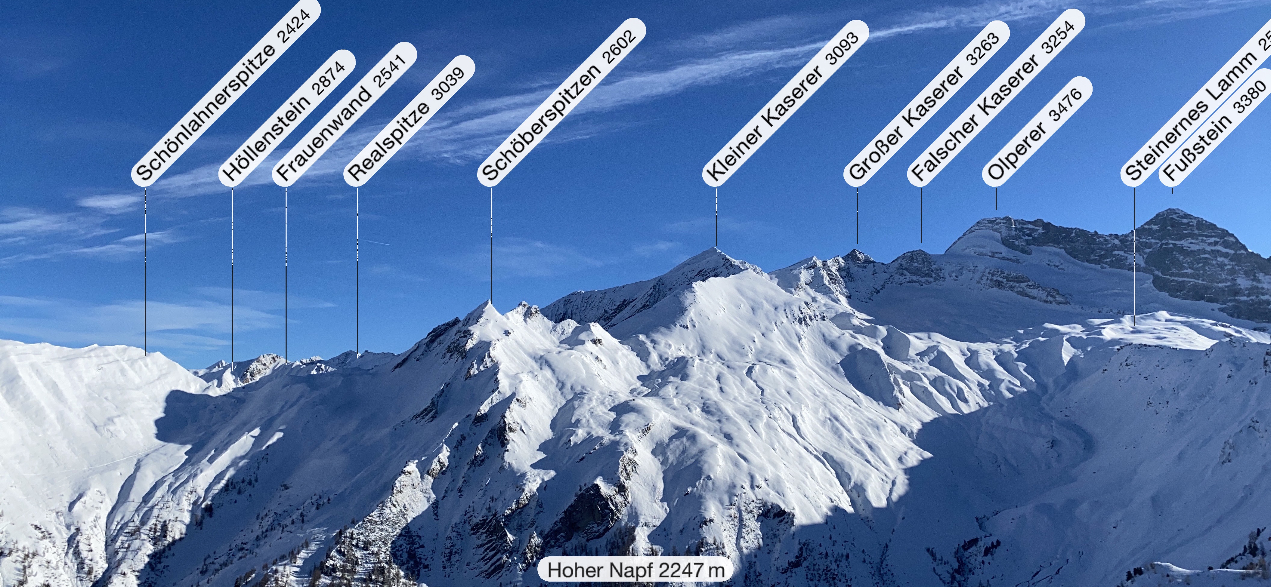 Die Aussicht ist trotzdem sehr schön auf Olperer und Fusstein sowie das gesamte Schmirntal.