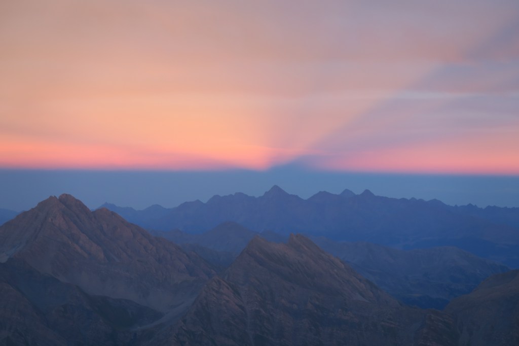 Nichtsdestotrotz standen Xander und ich um kurz vor Acht auf dem breiten Gipfelplateau und genossen die Ruhe und die Aussicht. Wir waren ganz alleine.