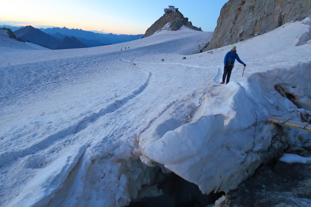 Geschafft! Die Erleichterung war recht groß als wir wieder am Gletscherplateau vor der Cosmique Hütte waren.