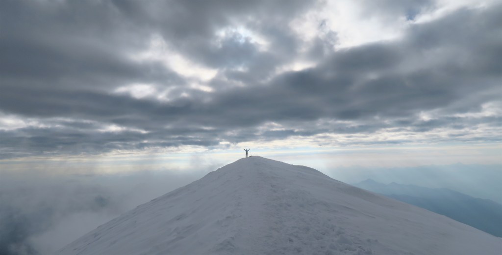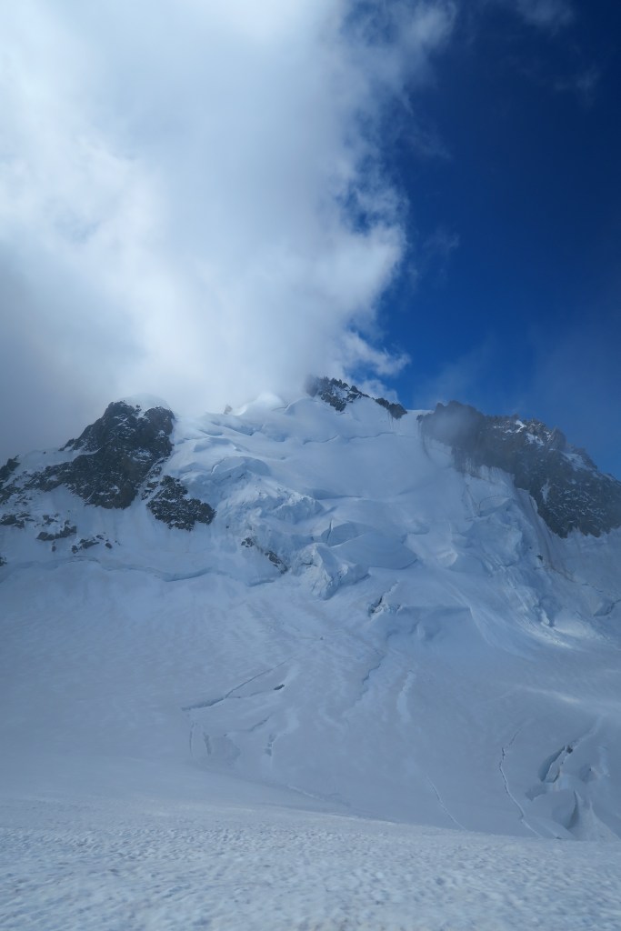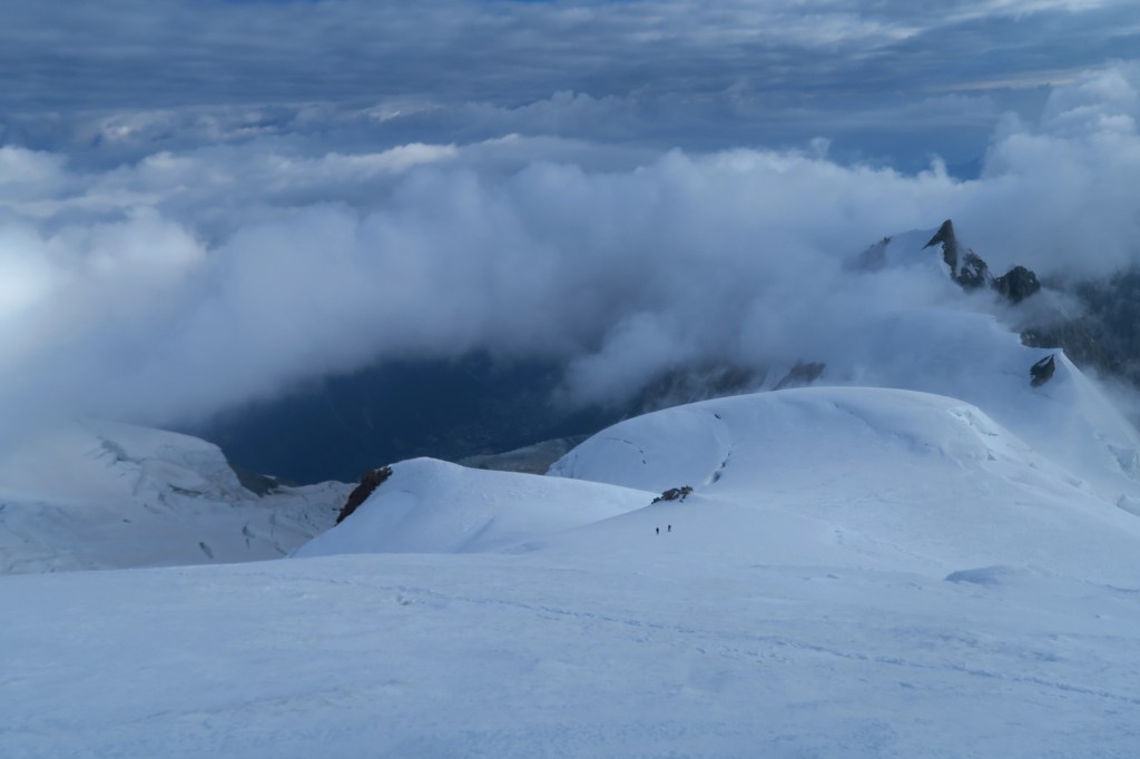 Die Schneekuppel des höchsten Berges der Alpen vor sich geht es langsam den breiten Rücken hinauf. Die letzten hundert Höhenmeter machte sich dann auch die dünnere Luft bemerkbar und die Schritte wurden deutlich anstrengender.