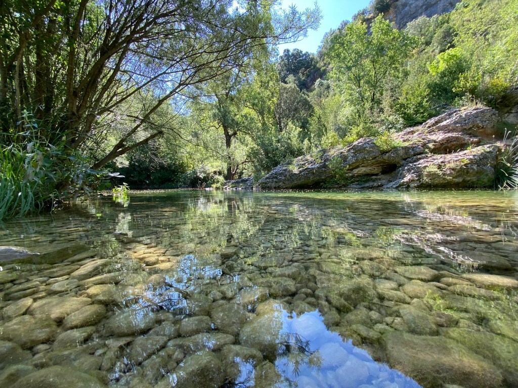 Über Mittag wird es dann im Sommer aber doch sehr heiß, Temperaturen über 30 Grad sind keine Seltenheit. Hier bietet sich für eine Abkühlung dann der kleine Fluss, der sich durch den Canyon schlängelt, an. Immer wieder gibt es Gumpen am Fluss, die sich perfekt zum Baden eignen. Wenn es am Abend wieder kühler wird, kann man sich in einen der nun schattigen Sektoren wie z.B. der Gran Boveda weiter austoben.