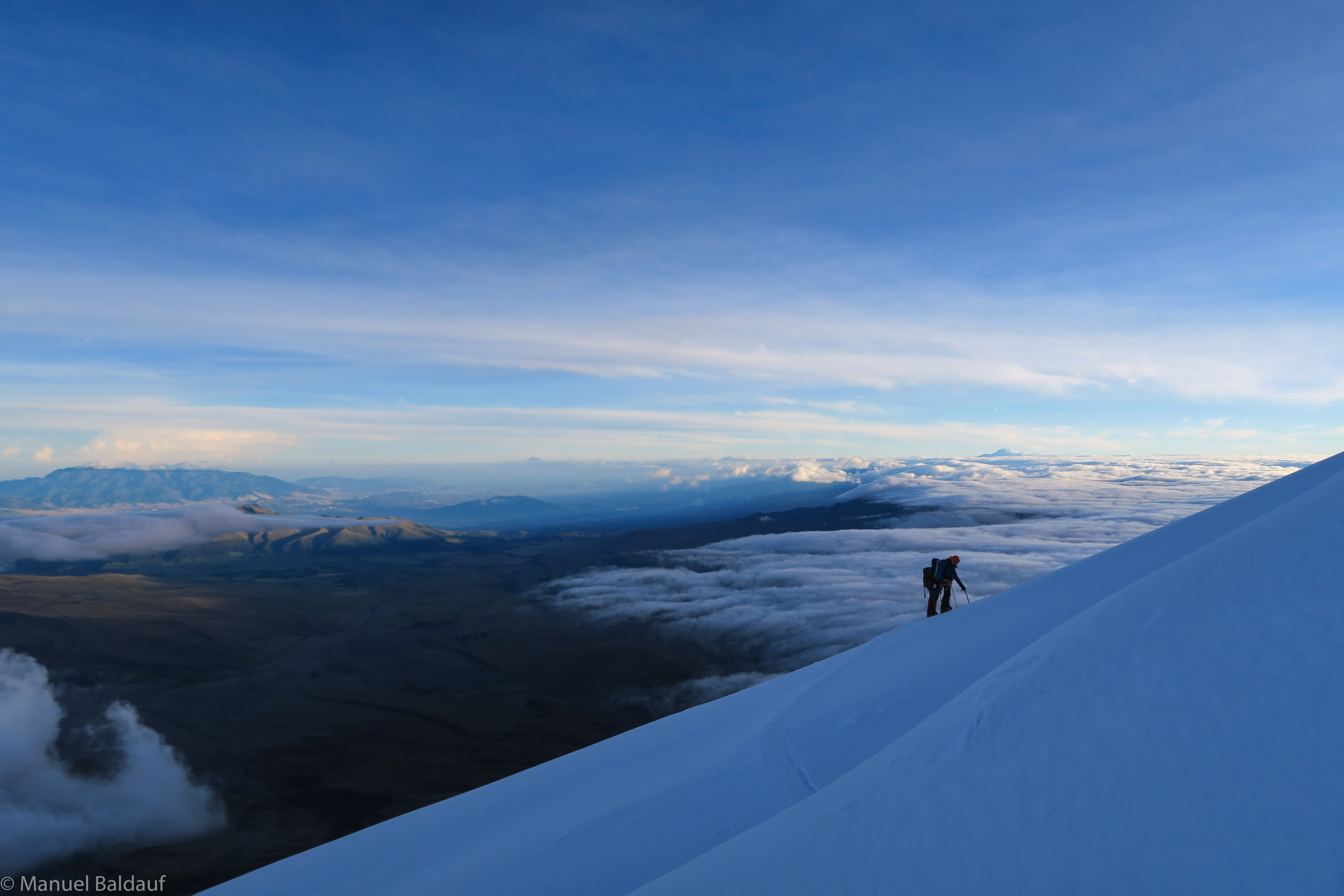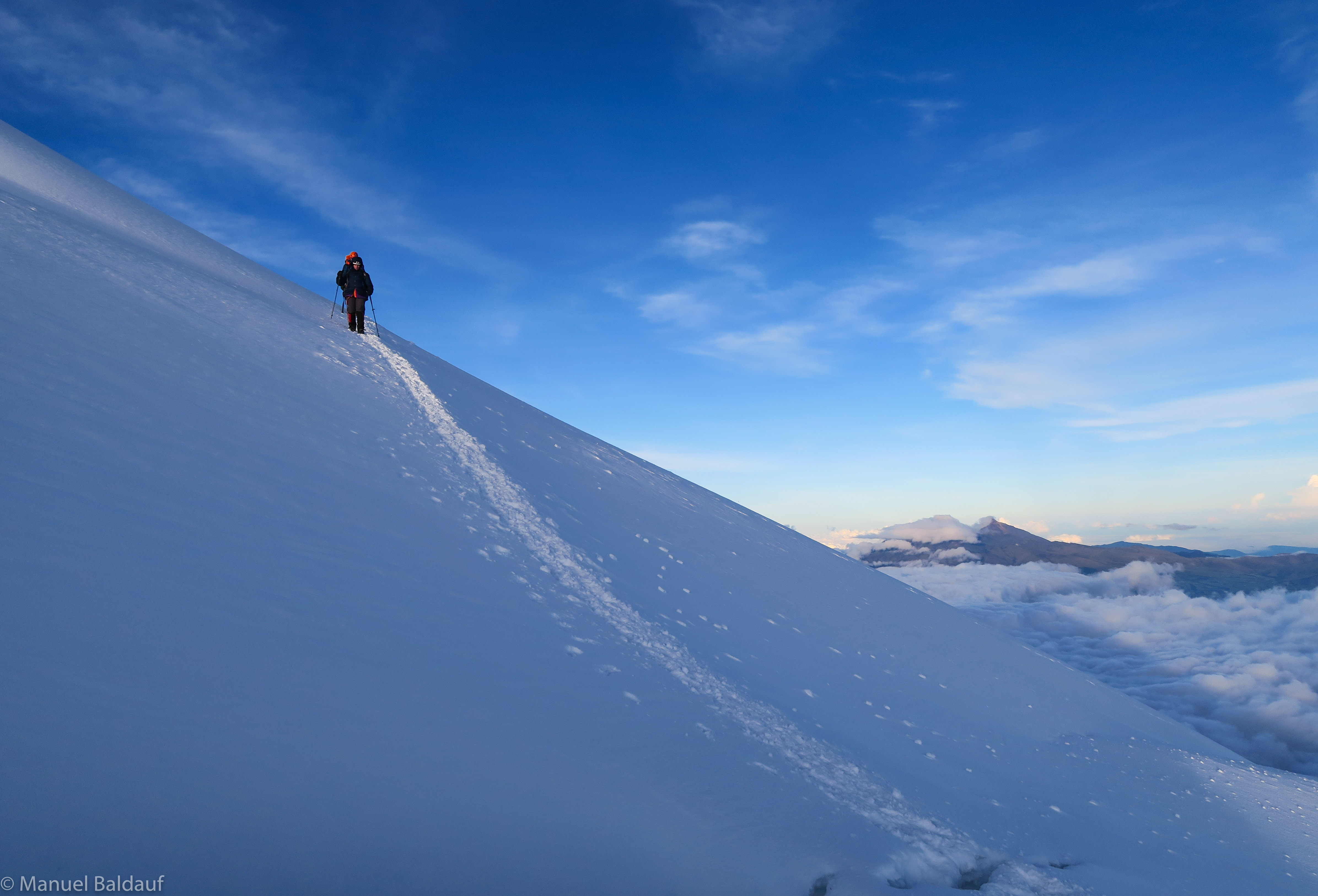 This is an active Volcano and the second highest mountain of Ecuador. Only 50 kilometers south of Quito it is a quite popular peak and atracts a lot of people. Nevertheless the high altidude brings an extra spice to the approach. The more than 1.000 vertical meters don’t seem much on the paper but when you are not used to the height you can get in difficulties quite fast. So make sure to aclimatize properly.