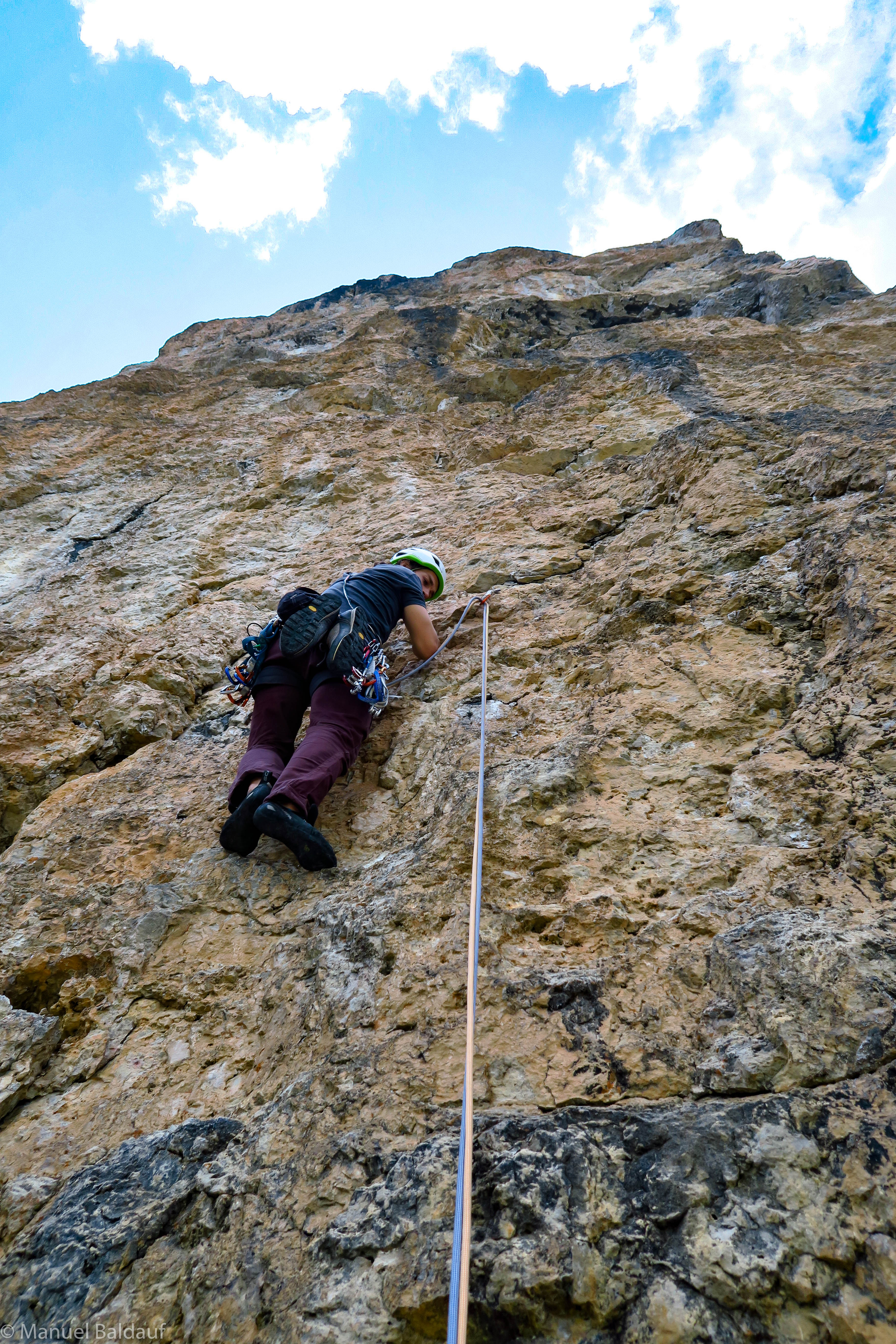 Die ersten drei Seillängen kannte ich bereits vom letzten Jahr, heute durfte ich auch noch den Rest der Route kennen lernen. Momentan alles trocken und wir sind auch noch die einzige Seilschaft heute. Perfekt!