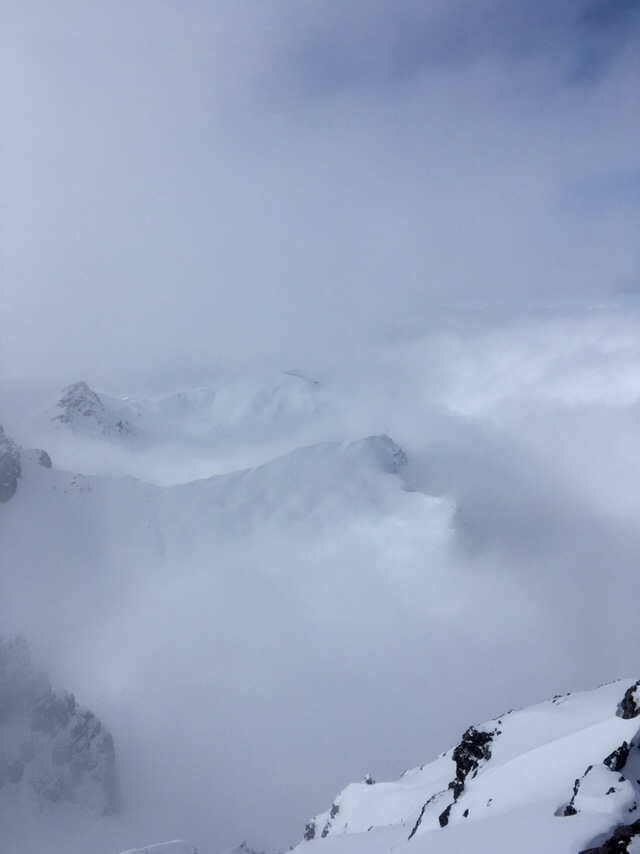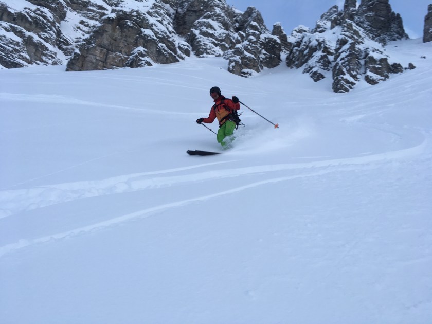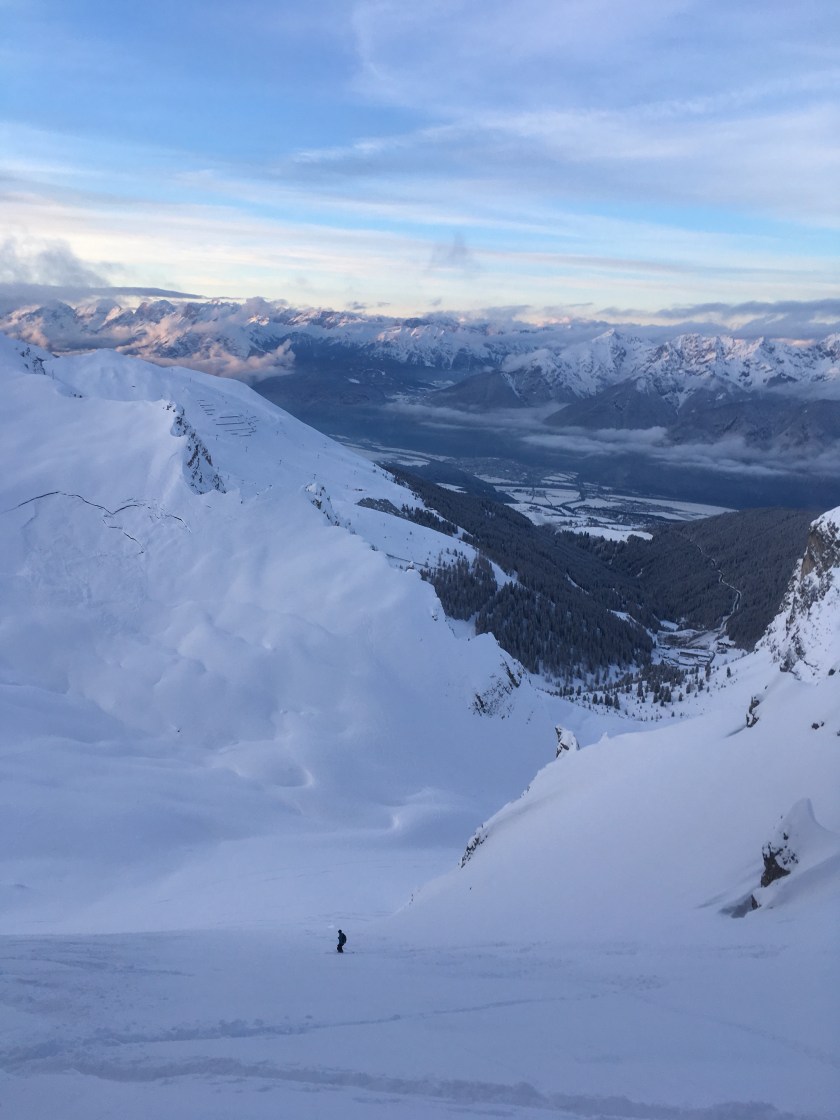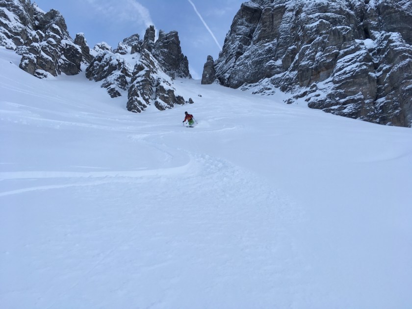 Insgesamt gab es in den Rinnen gut 15-20 cm Pulver und trotz der schlechten Sicht lies sich die Abfahrt genießen.