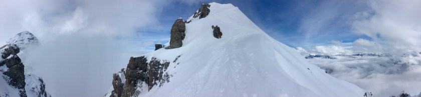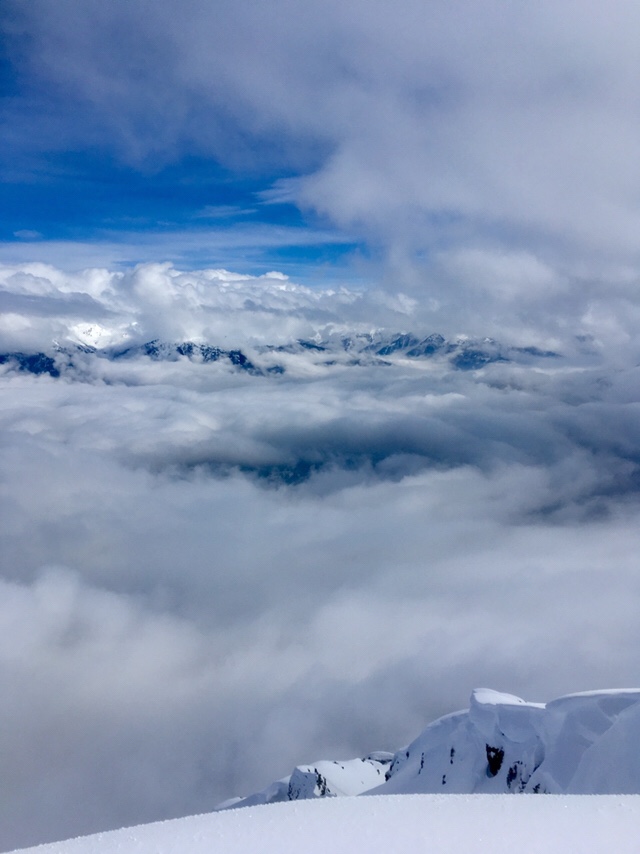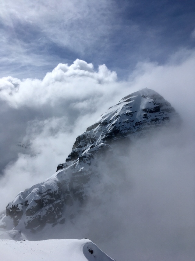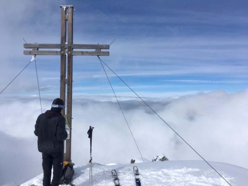 Am Gipfel strahlte mir dann kurze Zeit die Sonne entgegen bevor Sie sich bei der Abfahrt wieder hinter Nebelschwaden verzog.